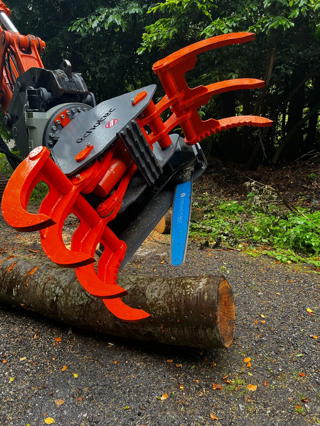 The Echotec Saw Grapple Grapple is a market leading attachment. Designed for forestry specialists for large scale removal the grapple can also be used for loading, stacking as well as felling. Manufactured from HARDOX ®and STRENX ™ the Grapple will outperform and outlast the competition. The grapple can be supplied in different configurations and comes with 360 degree rotation as standard. The Hultdins Super Saw has been integrated and offers the best in class cutting performance.